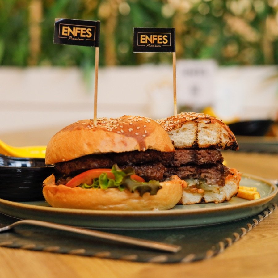 2 Adet 140 Gr Özel Yapım Burger Köfte Kıvırcık Marul, Domates Kornişon Turşu, Karamelize Soğan, Özel Dip Sos ve Cips